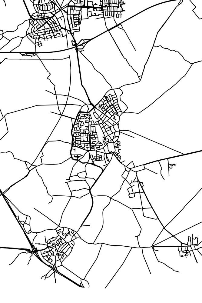 Black and white map, street map or street plan of Heeze. Heeze is located in the municipality of Heeze-Leende, province of North Brabant. The city map includes all public roads in Heeze. Furthermore, the map is provided with the coordinates of the center of Heeze.