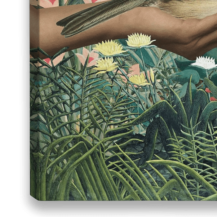 This is a digitally produced collage of details from paintings by French post-impressionist painter Henri Julien Félix Rousseau (1844-1910), combined with vintage images of a hand and of a bird.