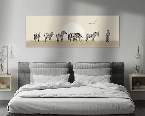 Buy this bird art Herd of zebras by Monika Jüngling on canvas, ArtFrame, poster and wallpaper, printed on demand in high quality.