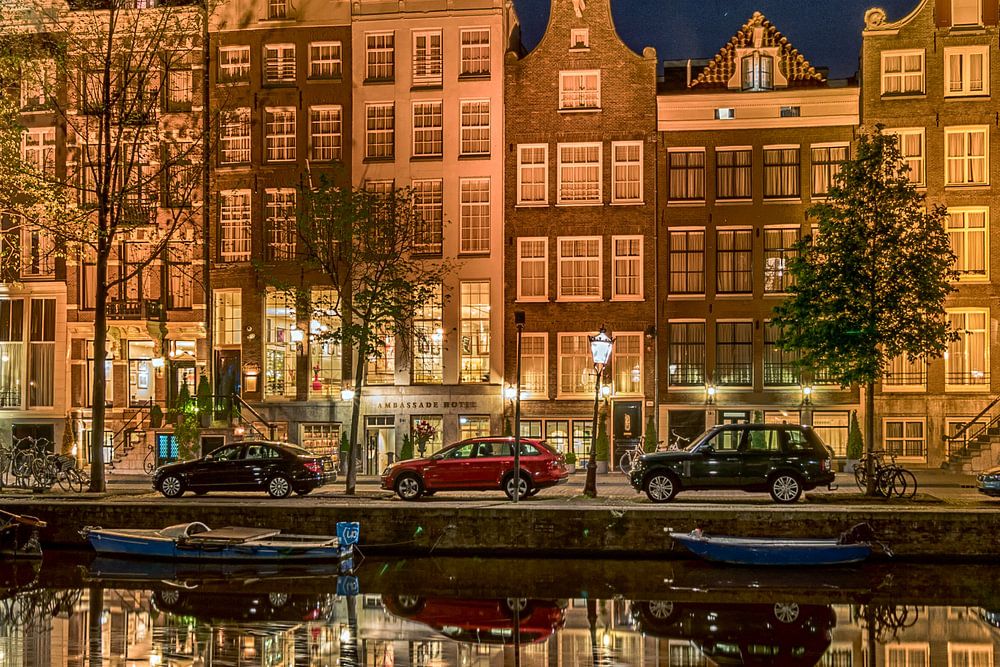 On a warm spring evening with almost no wind the Herengracht reflects in the canal.