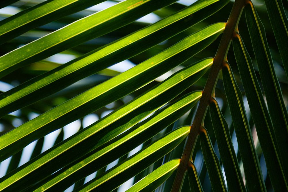 Vibrant coloured palm leaf in Unawatuna feating a herringbone structure.