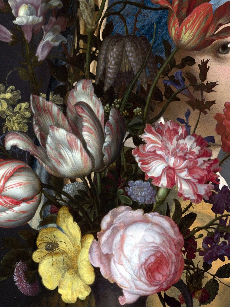 In this version, I have digitally combined the girl with a still life by Dutch painter Balthasar van der Ast, created by him around 1630.