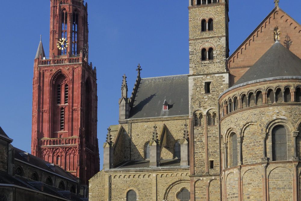 Een foto van het Vrijthof te Maastricht, met de Servaasbasiliek en de Sint-Janskerk.