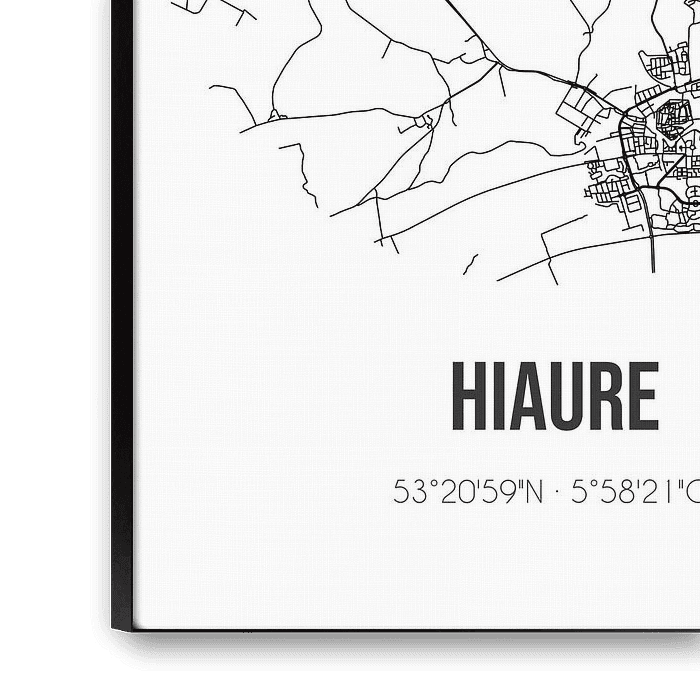 Black and white map, street map or street plan of Hiaure. Hiaure is located in the municipality of Noardeast-Fryslan, province of Fryslan. On the city map all public roads in Hiaure are included. Furthermore, the map is provided with the coordinates of the center of Hiaure.