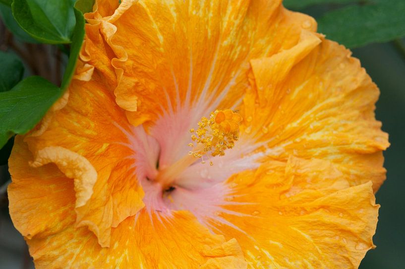 This hibiscus brings a radiant energy to a room with its beautiful yellow-orange like colors.