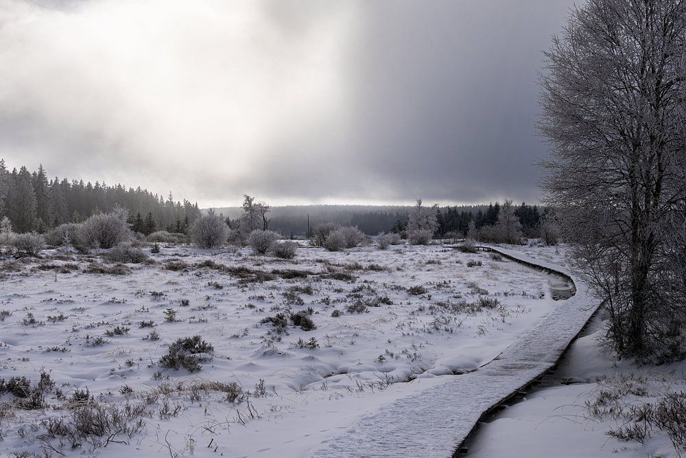 Foggy winter morning in the Brackvenn, High Fens Nature Park, Belgium