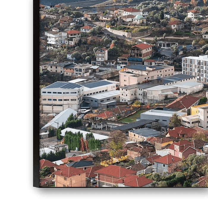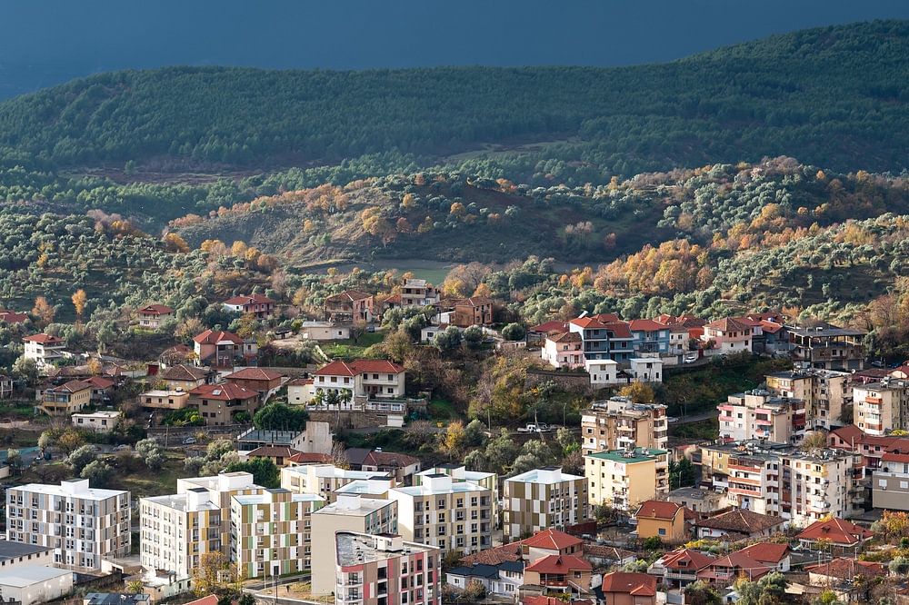 High angle panorama over the traditional village of Kruja, Durres County, Albania