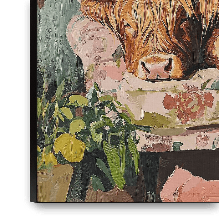 Buy this highland cow art Highland Cow by Niklas Maximilian on canvas, ArtFrame, poster and wallpaper, printed on demand in high quality.
