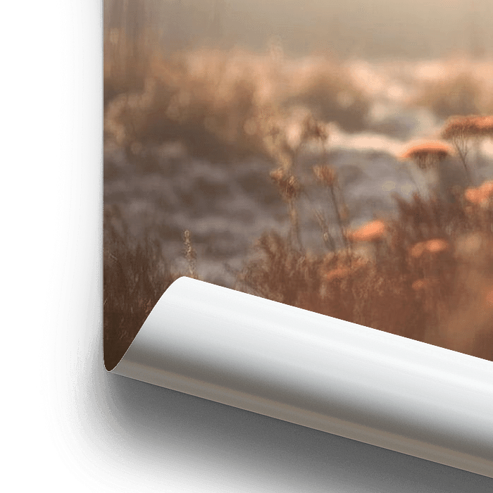 The tall grass and orange flowers add a touch of colour and life to the winter landscape. The composition exudes tranquillity and beauty, while the morning mist adds a touch of mystery. It is an encounter with the serene power of nature on a winter morning, a moment that is both enchanting and impressive.