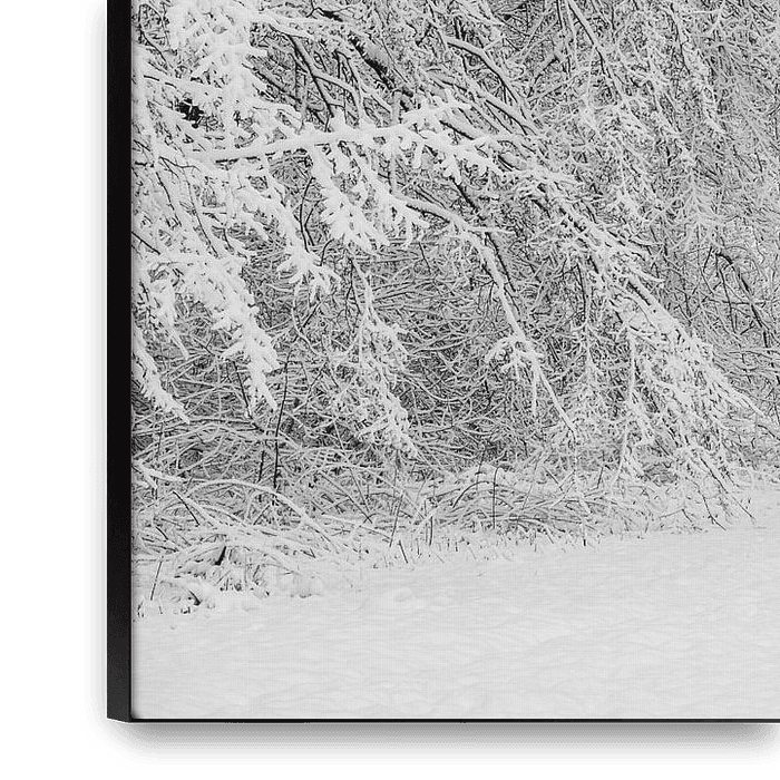 Tall snow-covered trees, an almost invisible…