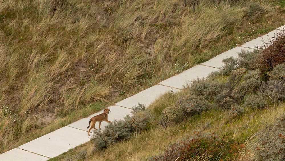 Hikers with their dogs in the dunes of Zoutelande