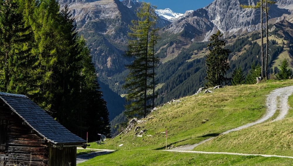 About "Hiking trail Bartholomäberg on a Maisäßlandschaft in Montafon"