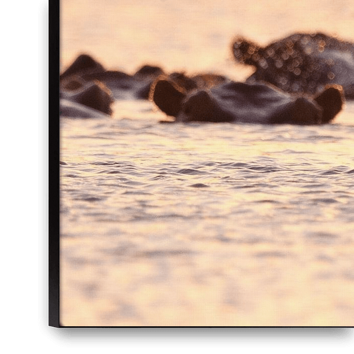 Buy the photo Hippo at sunset by Caroline Piek on canvas, ArtFrame, poster and wallpaper, printed on demand in high quality.