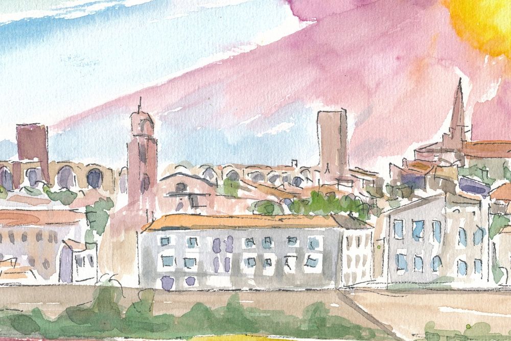 Buy this painting Historic Arles with view of the old town by Markus Bleichner as a reproduction on canvas, ArtFrame, poster and wallpaper, printed on demand in high quality.