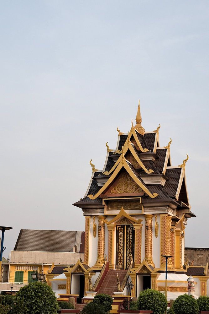 Surrounded by a paved esplanade and a few trees, it is part of an urban but breathtaking environment, where residents can stroll or meditate. The blue sky and the play of shadows accentuate its relief. It's a must-see landmark for visitors to Paksé, and a popular photographic stop for its architectural clarity.