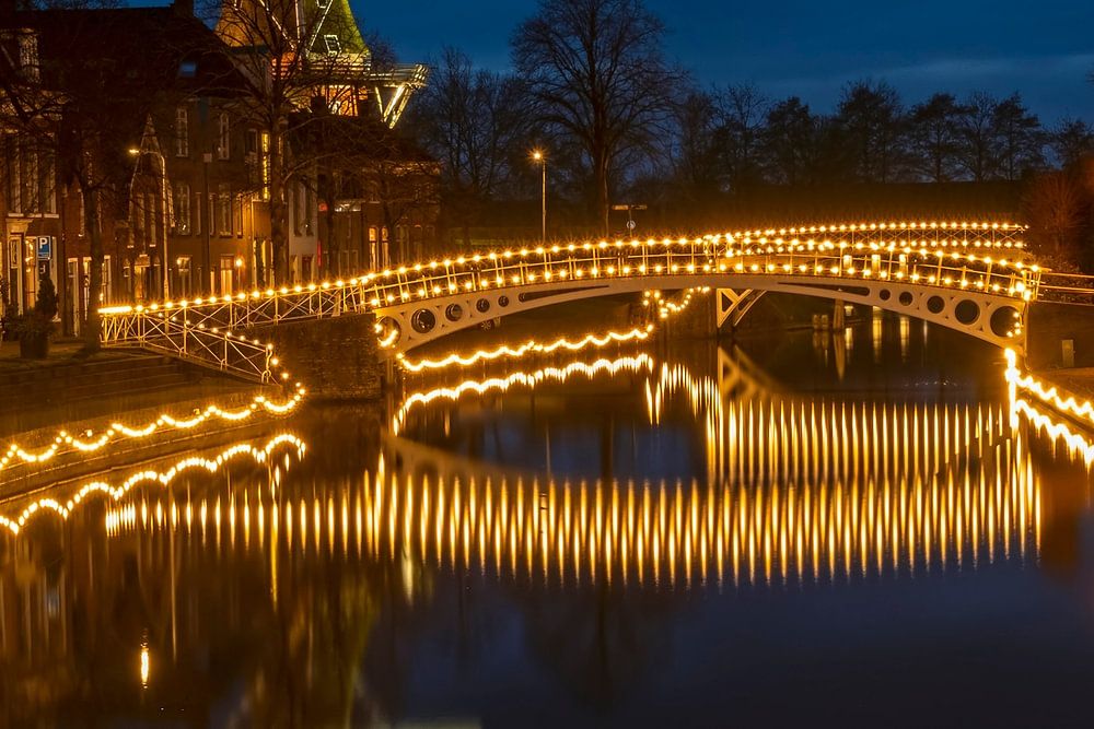 About "Historic town of Dokkum in Christmas atmosphere in Friesland Netherlands at night"
