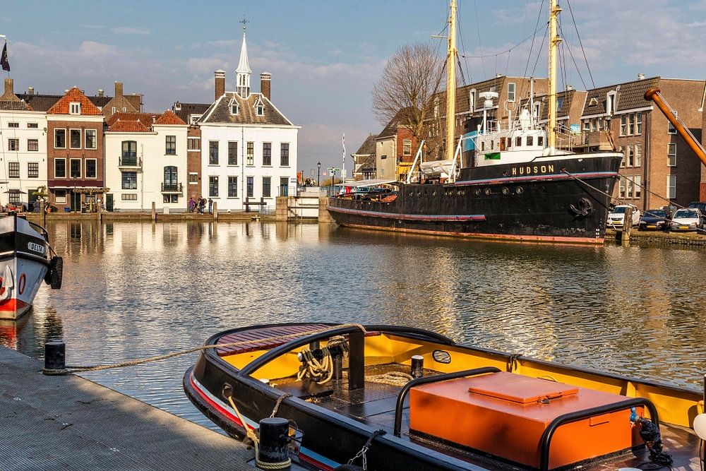 Historic port of Maassluis with old ships (South Holland, Netherlands).