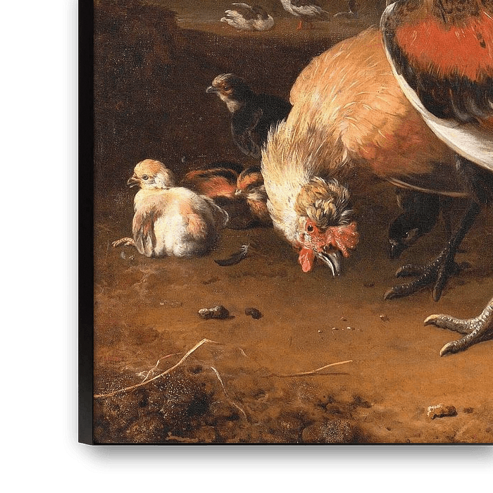 Buy Hoenderhof, Melchior d'Hondecoeter as a reproduction on canvas, ArtFrame, poster and wallpaper, printed on demand in high quality.