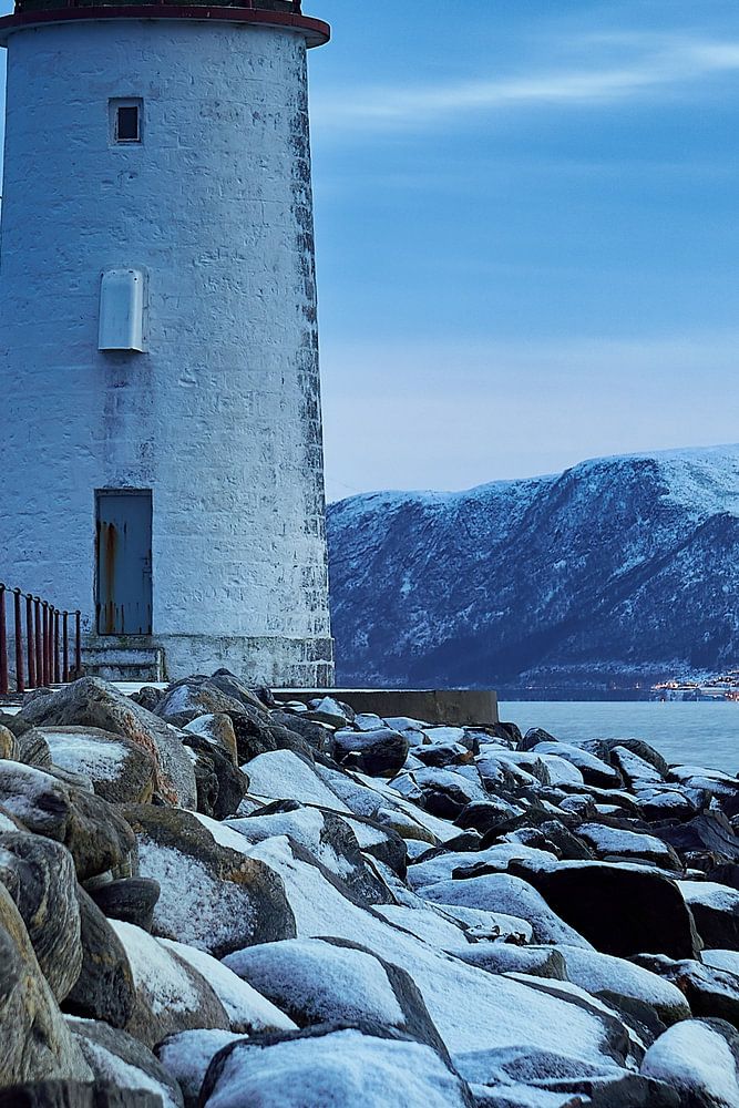 Hogstein lighthouse in winter, Godøy, Ålesund, Norway