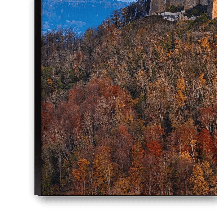 The iconic hilltop castle surrounded by soft autumn colours and a peaceful morning atmosphere.