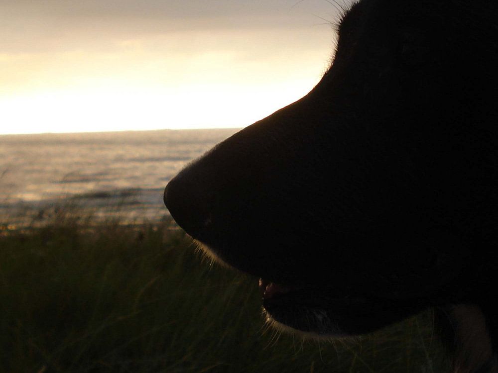 Hond aan zee met zonsondergang by Sigune italiaanser