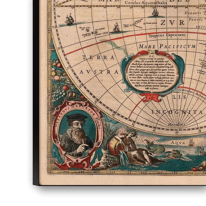 Buy Hondius verdenskart, 1641 as a reproduction on canvas, ArtFrame, poster and wallpaper, printed on demand in high quality.