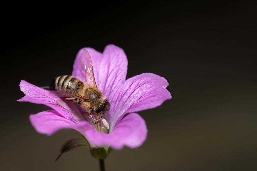 Buy this flower art Honeybee in purple flower by Ulrike Leone on canvas, ArtFrame, poster and wallpaper, printed on demand in high quality.
