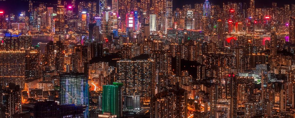 Hong Kong cityscape as seen from the hills behind Kowloon. Night has fallen and the lights are on.... What a city!