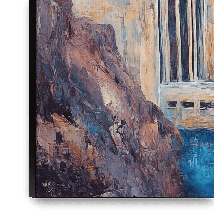 Hoover dam oil painting that will be a unique addition to any room. With its beautiful and stylish look, it is a true eye-catcher. The brilliant colours and unusual design make this artwork 100% unique and original. It is the perfect photo print to complete your interior.