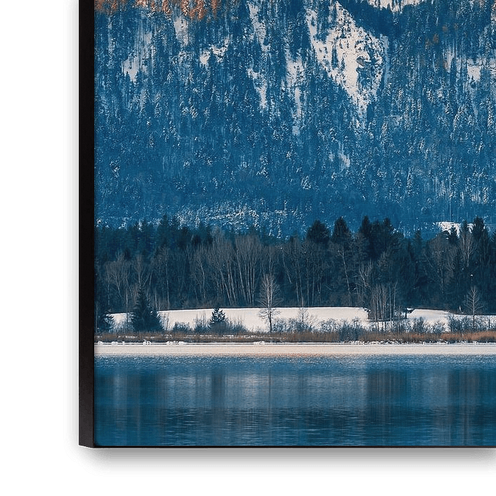 Winter and sunrise over the Hopfensee, at Hopfen am See with the Karwendel Mountains in the background, located near Füssen, in the Allgäu, in Bavaria, southern Germany.