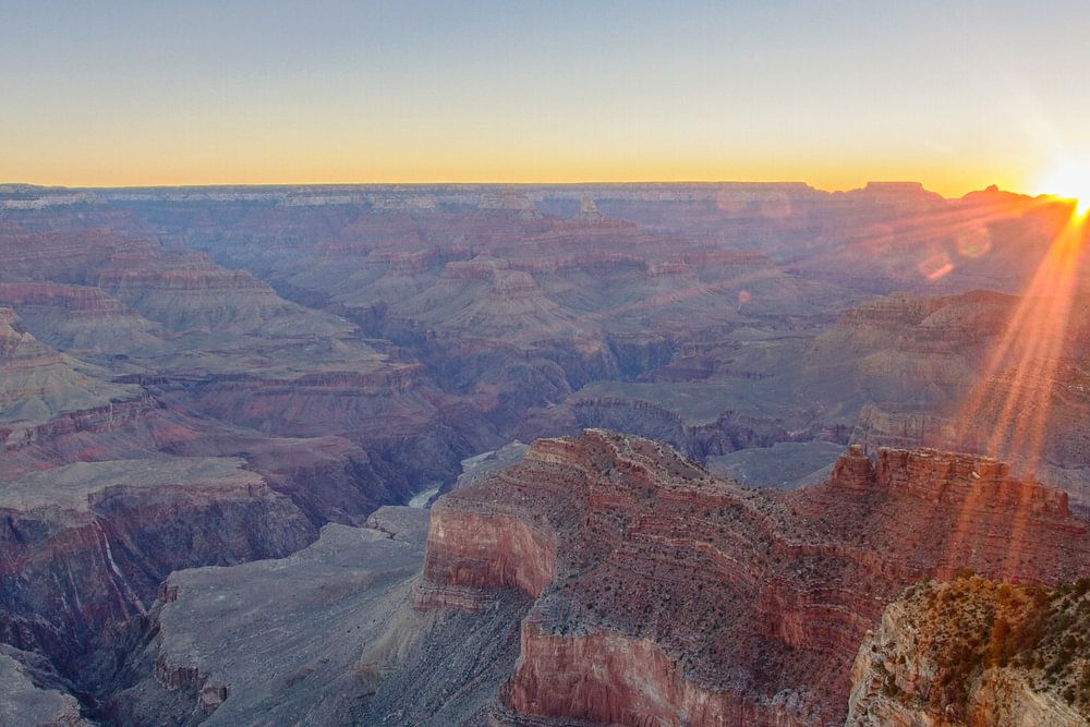 Hopi Point is perhaps one of the most popular places to watch the sunset in the Grand Canyon. It offers an incredibly wide and distant view. From here you can see many table mountains and rock formations, such as the Battleship, the Isis Temple and the Zoroaster Temple.
