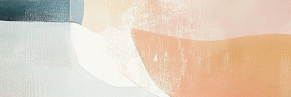 Horizon | Gentle Hues of Peaceful Thought - This abstract painting depicts a series of soft, overlapping shapes in subtle hues of dark blue, white, orange and various shades of pink that flow and give the impression of a gentle horizon or a serene landscape.