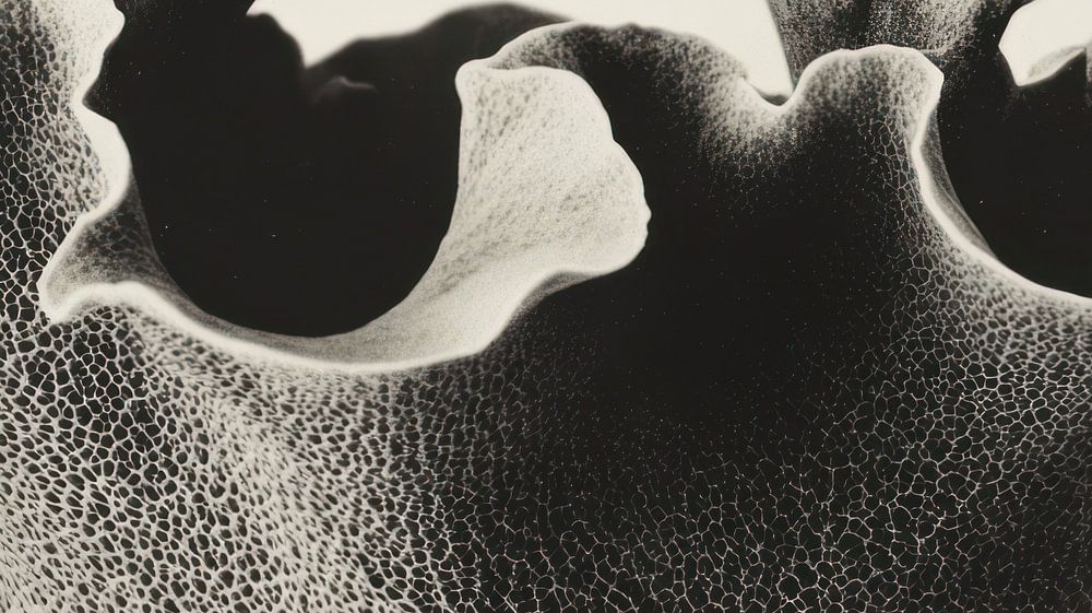 This artwork has an elegant and mysterious look with a strong contrast between light and dark. The style is reminiscent of a mix of botanical illustrations and fine-art photography, giving the flowers and plants an almost ethereal, graphic quality. The black-and-white and subtly toned composition gives the work a timeless and sophisticated look.