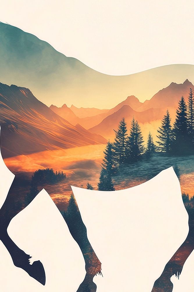 A majestic horse, filled with breathtaking landscapes, brings nature to life in any room. The harmonious fusion of mountains and forests brings a calm, inspiring atmosphere, ideal for the living room or office, where creativity and relaxation go hand in hand.