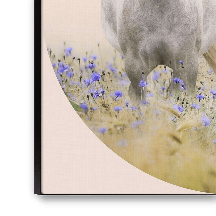 Buy this digital art artwork Horse in flower field by @Unique as a reproduction on canvas, ArtFrame, poster and wallpaper, printed on demand in high quality.