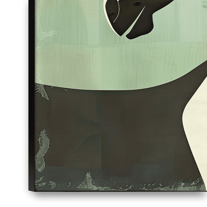 This artwork is an abstract representation of a horse, mainly in shades of green and cream, with minimalist lines and geometric shapes. The design combines simple shapes with subtle texture, creating a modern look. The composition is carefully balanced, with the horse's head and neck in a graceful curve. The colour choice and…