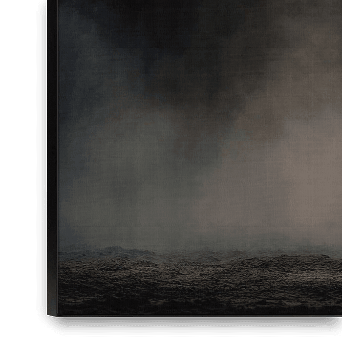 A majestic horse emerges powerfully from the darkness, surrounded by mysterious mist. Its proud stance and shiny coat radiate strength and elegance. This impressive work of art adds a dynamic atmosphere to any living room and attracts everyone's attention while telling stories of freedom and adventure.