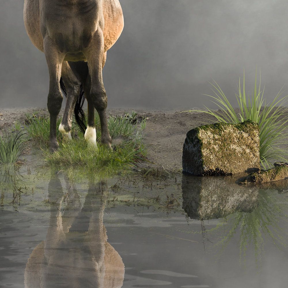 These horses are part of a series of 7 different works. The pictures are taken at the nature reserve. The photo was then edited in Photoshop. The images are " loose" to order.
