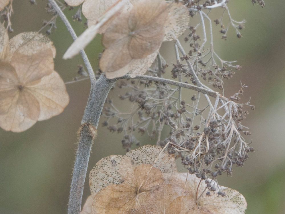 Macro of a half-decomposed Hydrangea (Hydrangea), with almost transparent leaf. in which every detail is visible.