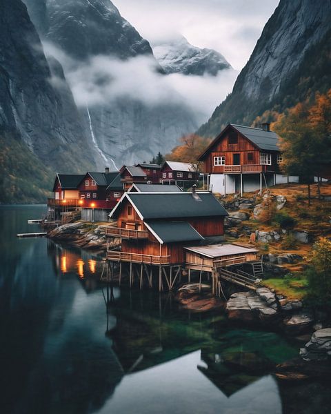 Buy this landscape artwork House by the lake by fernlichtsicht on canvas, ArtFrame, poster and wallpaper, printed on demand in high quality.
