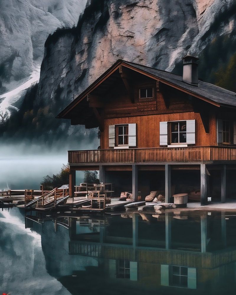 Buy this landscape artwork House by the lake by fernlichtsicht on canvas, ArtFrame, poster and wallpaper, printed on demand in high quality.