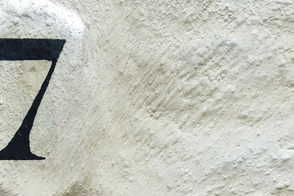House number 7 on the façade of an old house in the historic centre of Bruges in Belgium. Text space on the right-hand side.