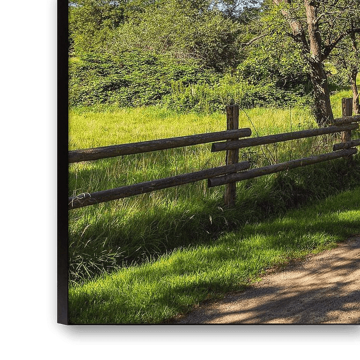 Buy this landscape artwork House with road and trees on the island of Kampenwerder in the Schaa by Rico Ködder on canvas, ArtFrame, poster and wallpaper, printed on demand in high quality.