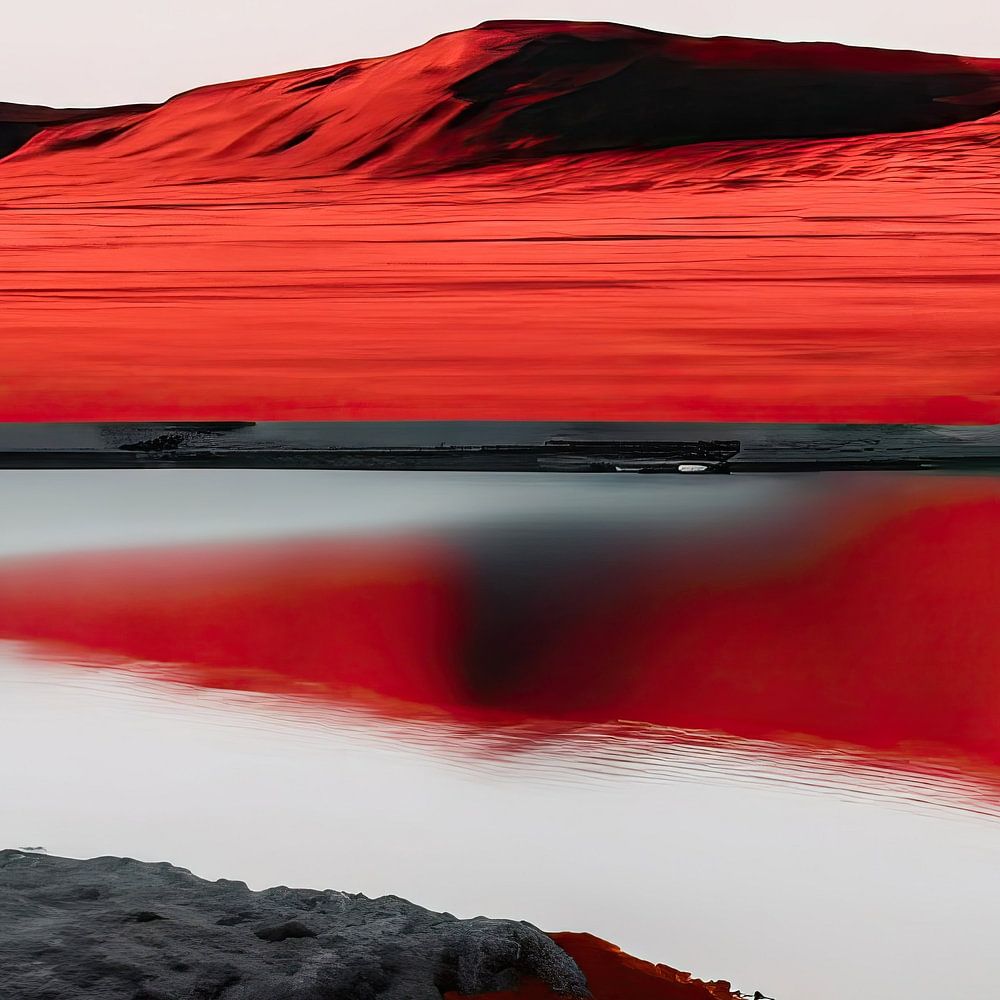 Buy this digital art artwork Houses by the lake Iceland red-3 by Rautenberg Digital Art Maritim as a reproduction on canvas, ArtFrame, poster and wallpaper, printed on demand in high quality.