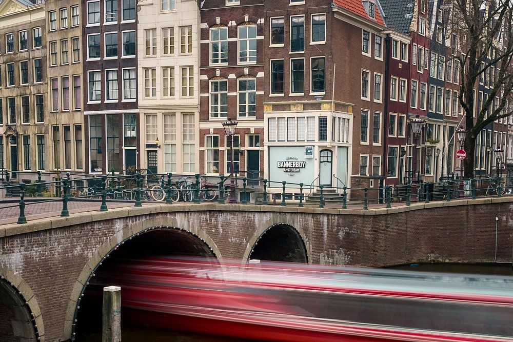 A tourist boat passes by while taking the picture. The slow shutter speed allows you to see the boat in motion. This makes it a beautiful abstract image.