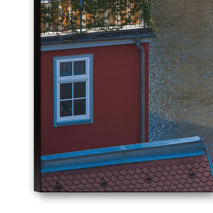 Buy this landscape artwork Houses on the river Gera in Erfurt by Werner Dieterich on canvas, ArtFrame, poster and wallpaper, printed on demand in high quality.