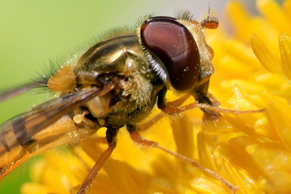 Hoverfly on a anemone flower. There are many types of gliding and really worth it to them to see each one close.