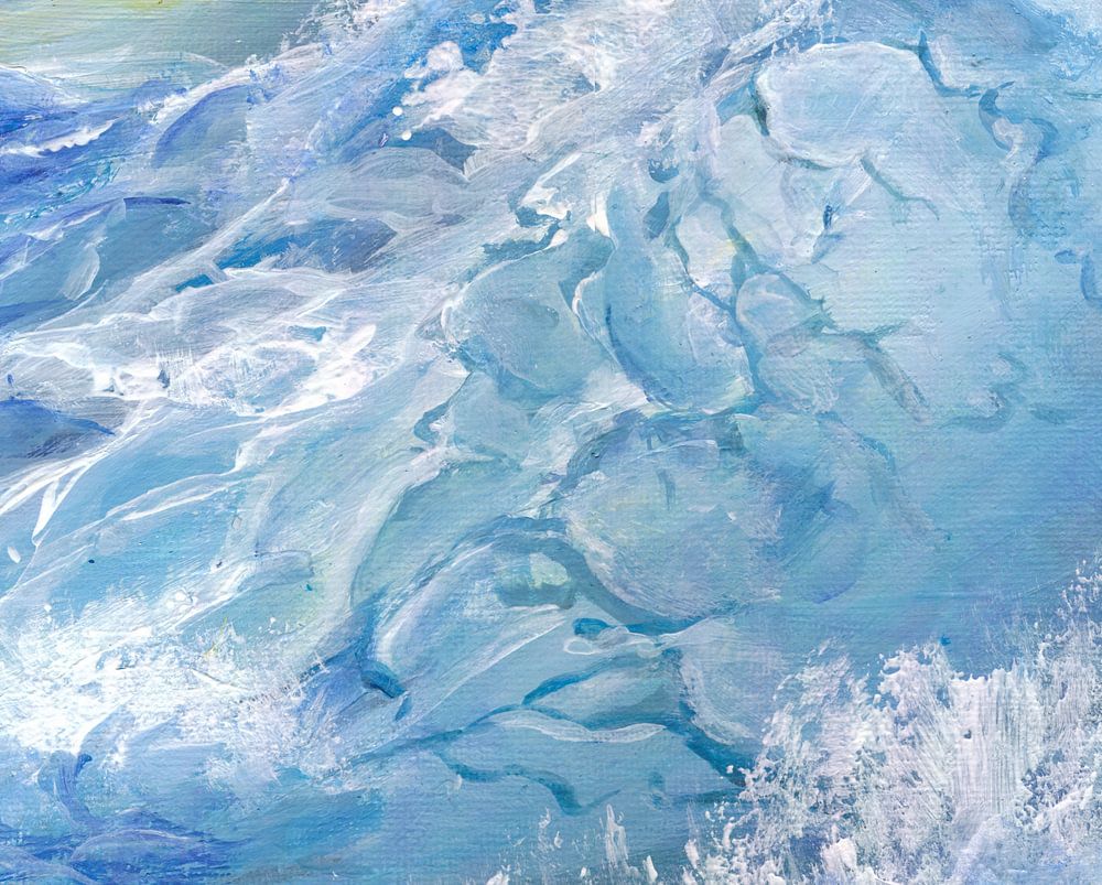 Buy this painting Huge blue waves in the ocean with spray by Markus Bleichner as a reproduction on canvas, ArtFrame, poster and wallpaper, printed on demand in high quality.