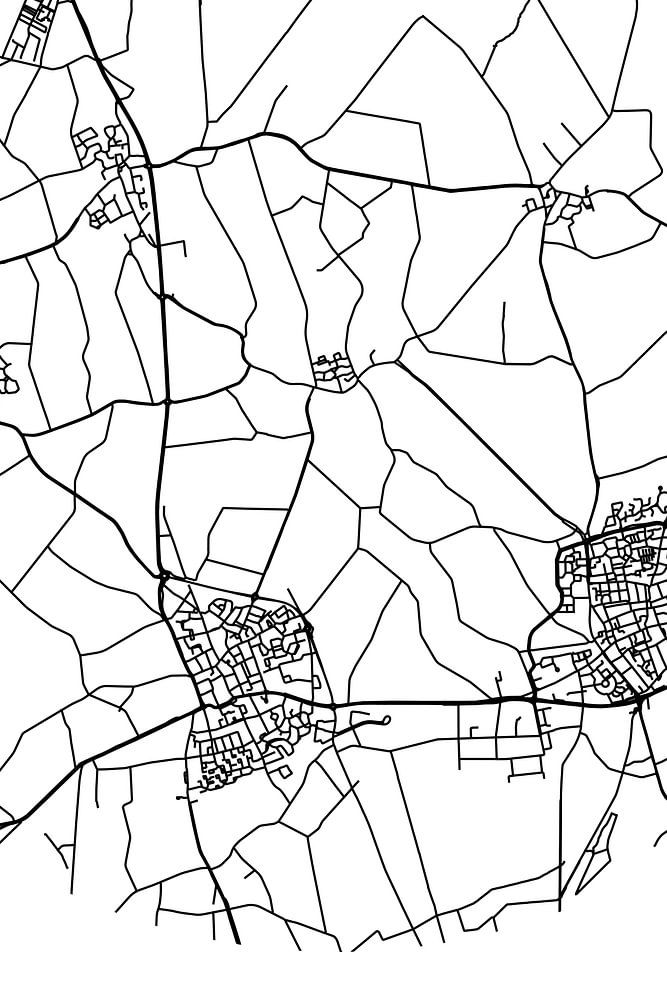 Black and white map, street map or street plan of Hulsel. Hulsel is located in the municipality of Reusel-DeMierden, province of North Brabant. The city map includes all public roads in Hulsel. Furthermore, the map is provided with the coordinates of the center of Hulsel.