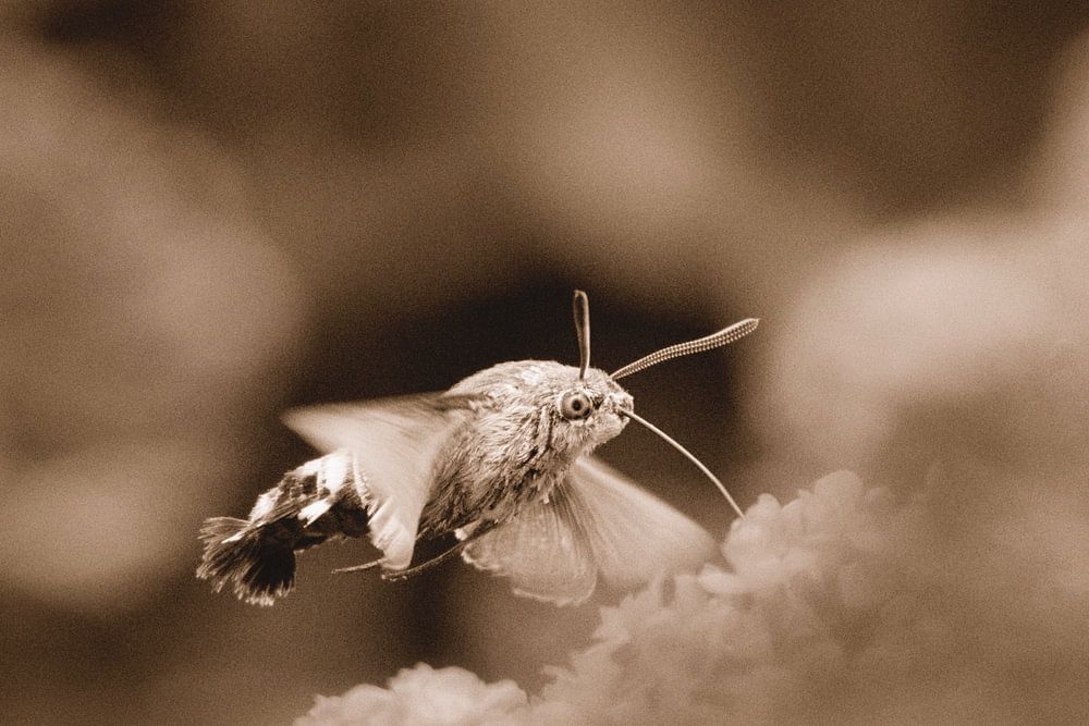 The adult butterflies suck nectar from flowers of plant species from different plant families. The hummingbird butterfly is active during the day but can also be found flying at dusk and at night.